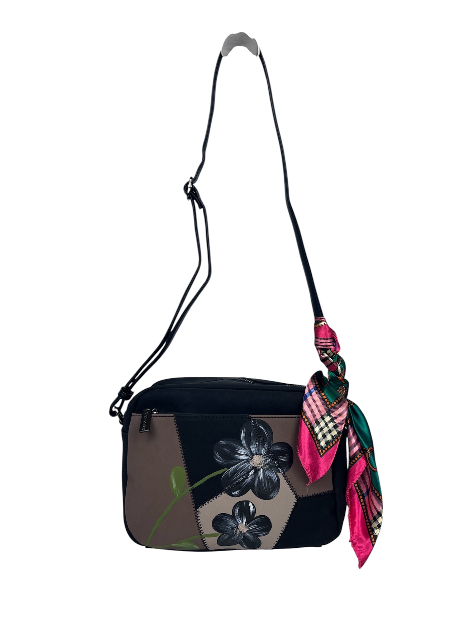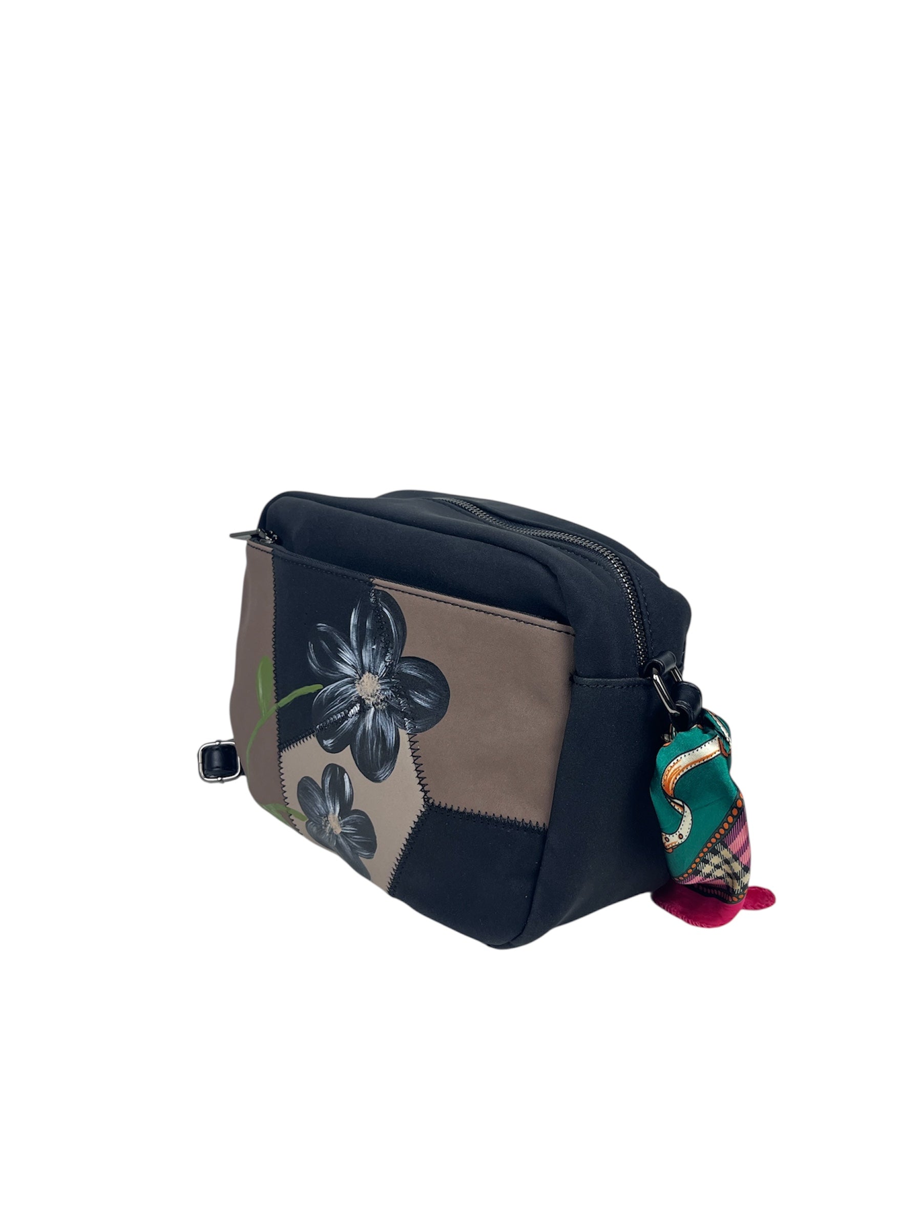Borsa tracolla dipinta a mano. Colore nero-fango -beige